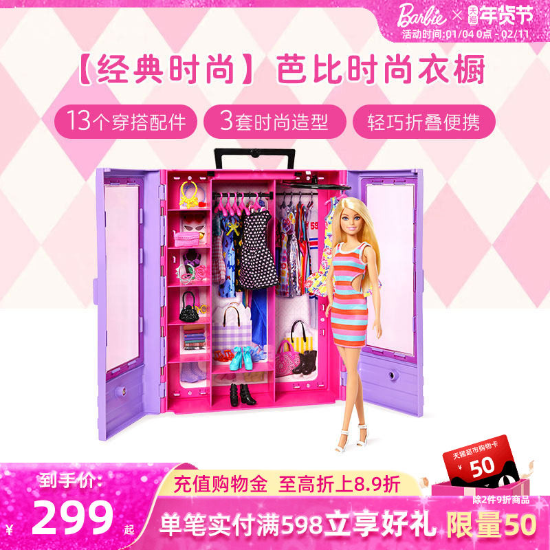 芭比娃娃Barbie梦幻时尚衣橱穿搭换装礼盒套装公主儿童过家家玩具