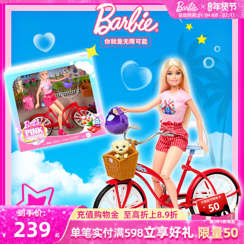 芭比娃娃Barbie之惬意午后骑行玩具套装女童过家家生日礼物送礼