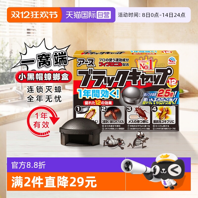 日本进口小黑帽蟑螂药全窝端家用强力杀除厨房蟑螂屋小黑屋除蟑螂