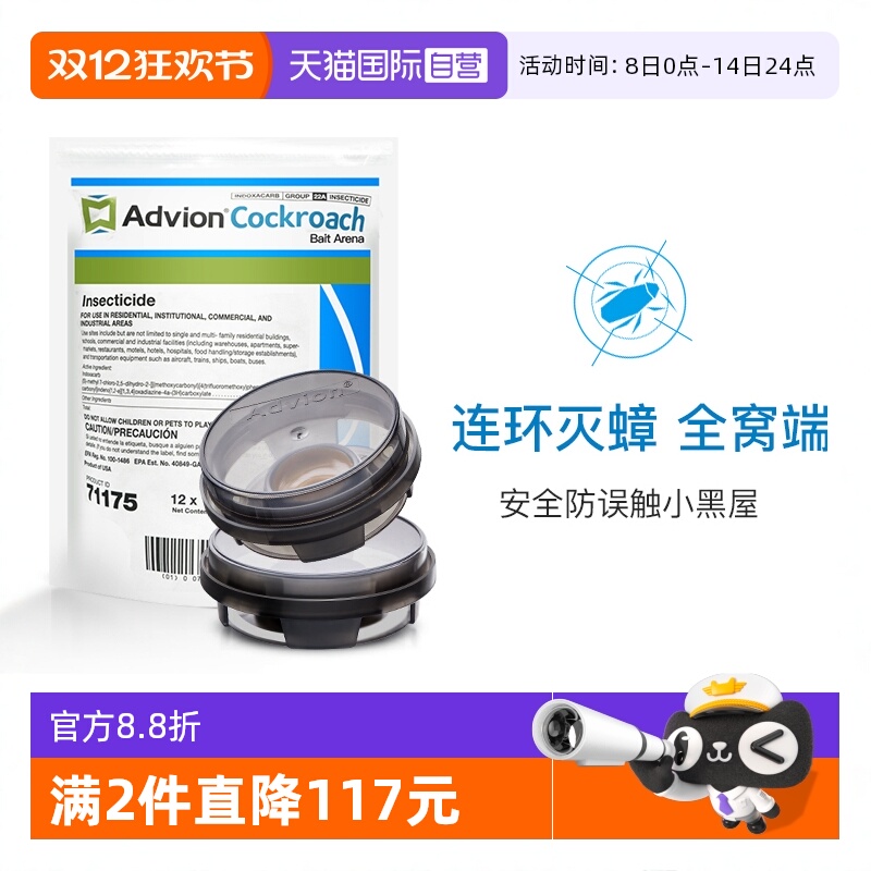 【自营】美国Advion蟑螂药全窝端家用无毒孕妇婴儿杀蟑螂屋小黑屋