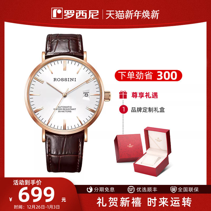 罗西尼新款手表男机械男表潮流简约男表皮带防水男士腕表518827
