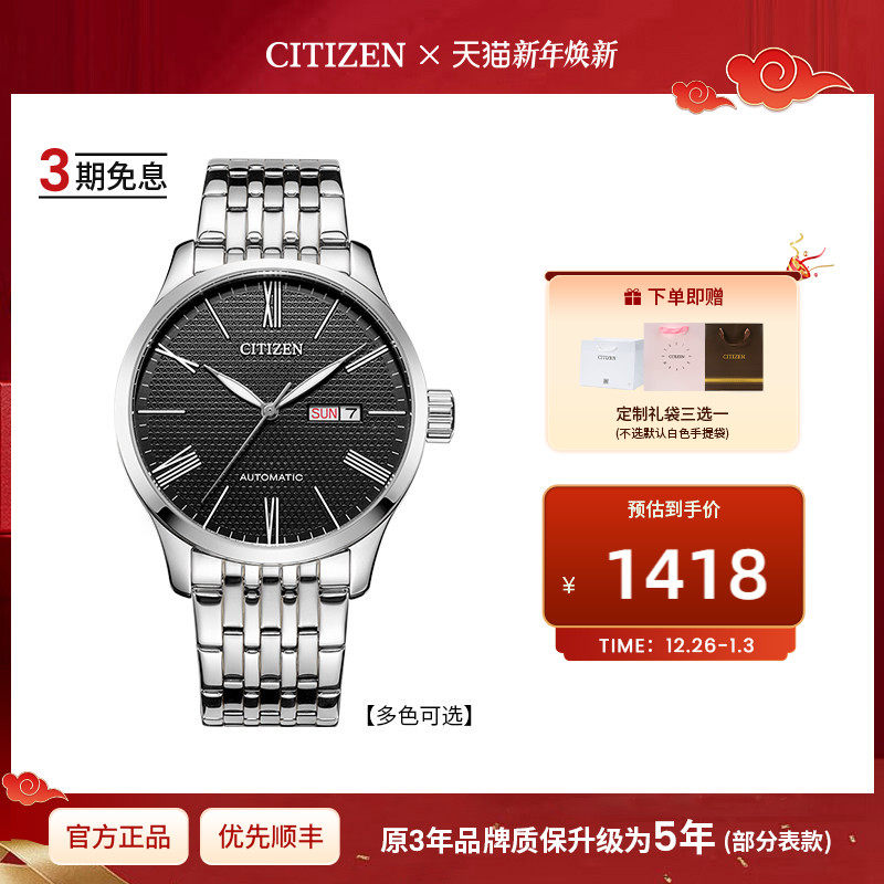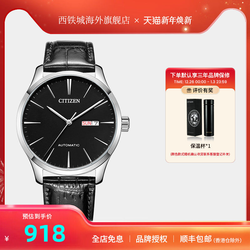 【商场同款】西铁城经典商务休闲机械透底皮带钢带男表NH9130