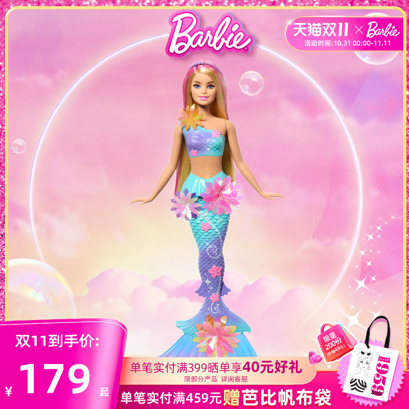 芭比娃娃Barbie梦幻花朵美人鱼童话系列女孩穿搭玩具互动体验