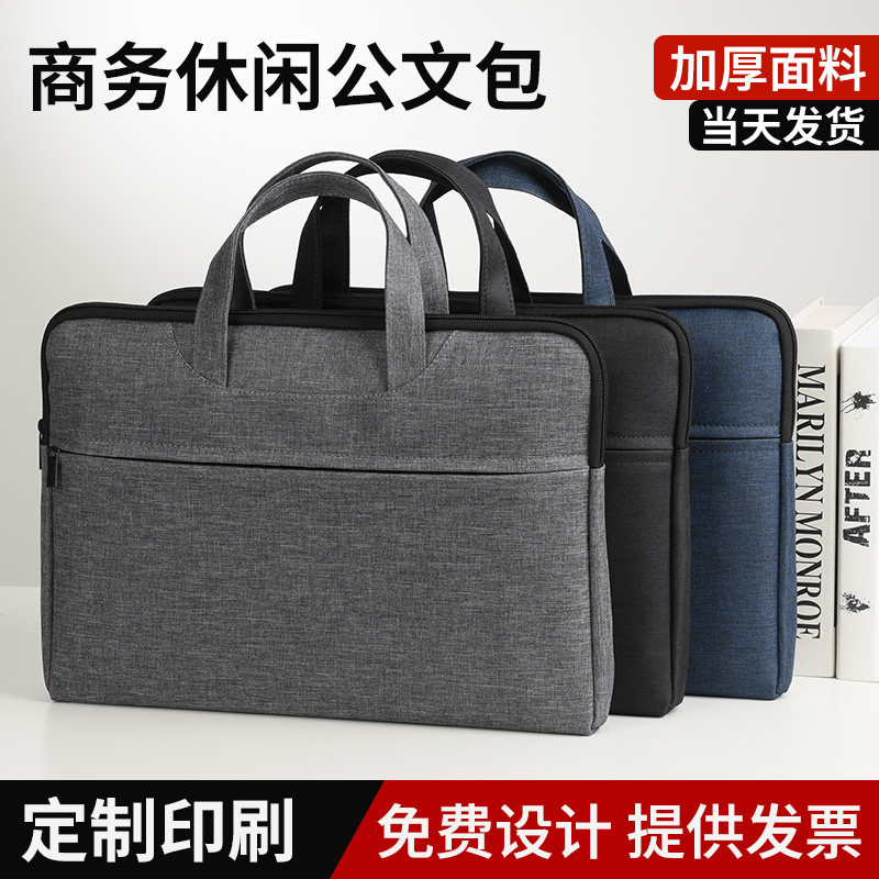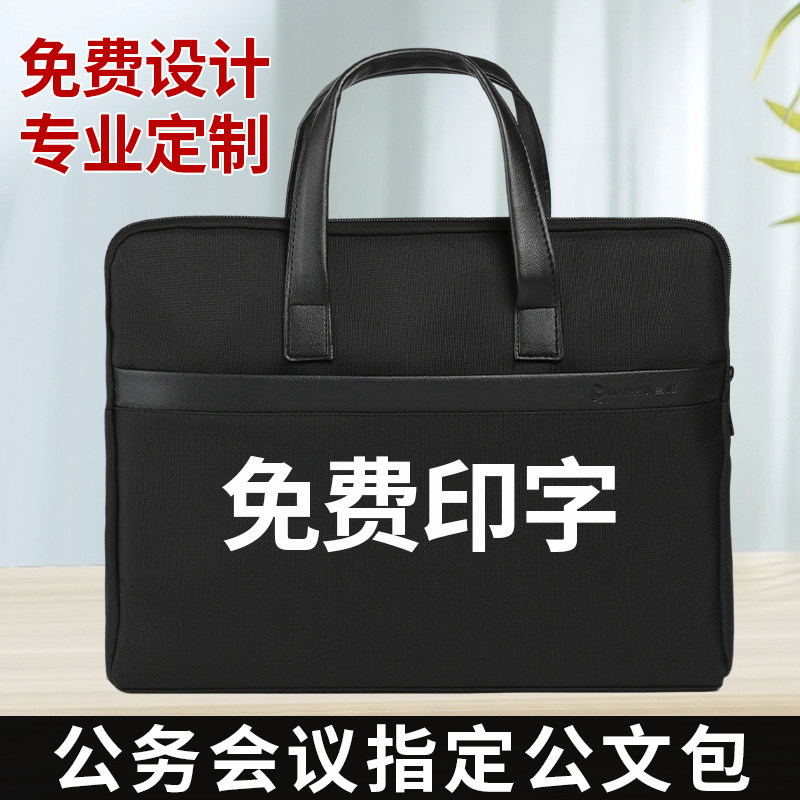 商务公文包手提文件袋男女商务帆布电脑包大容量防水通勤商务公文包高级感设计公务会议专用包可定制印logo