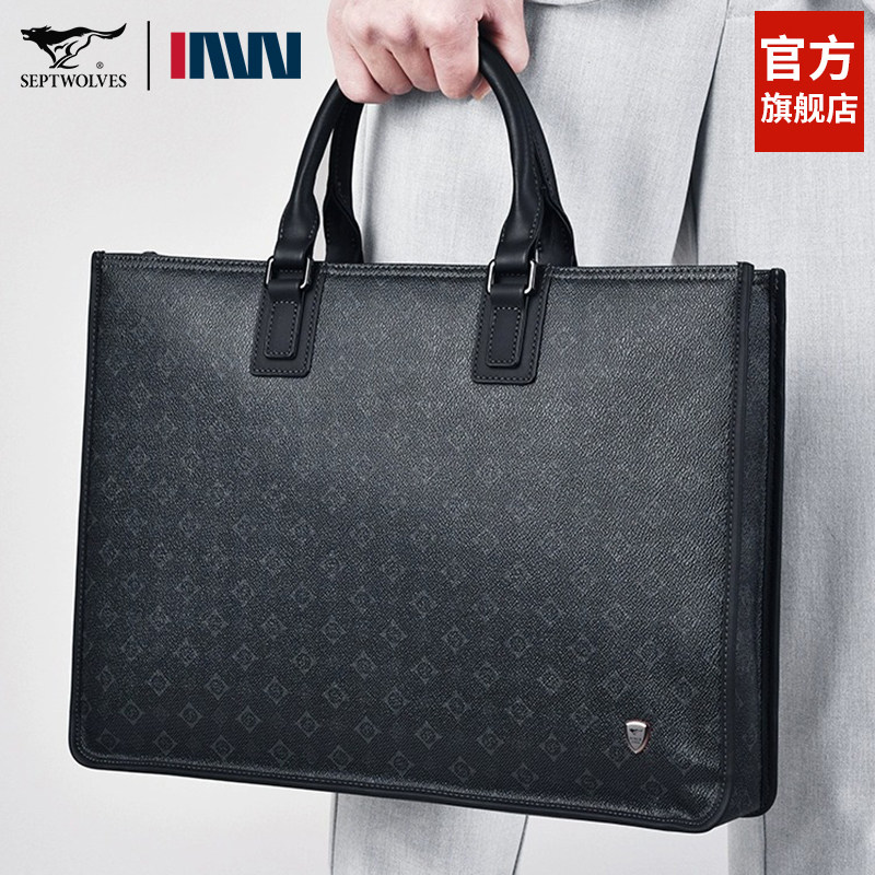 七匹狼男士手提包2026新款公文包通勤大容量公务包简约商务男包