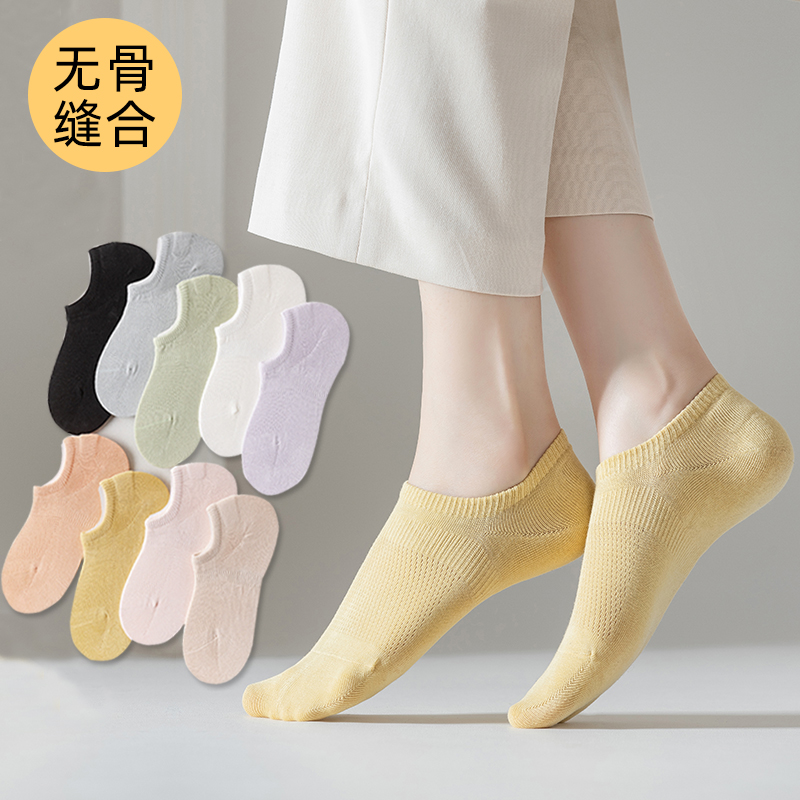 袜子女无骨缝合夏季薄款船袜隐形棉袜网眼透气浅口短袜硅胶防掉跟