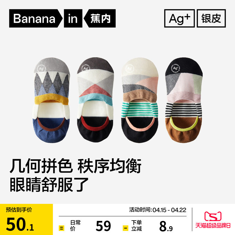 10A抗菌|蕉内银皮555Color男女情侣船袜浅口防滑棉袜隐形防臭袜子