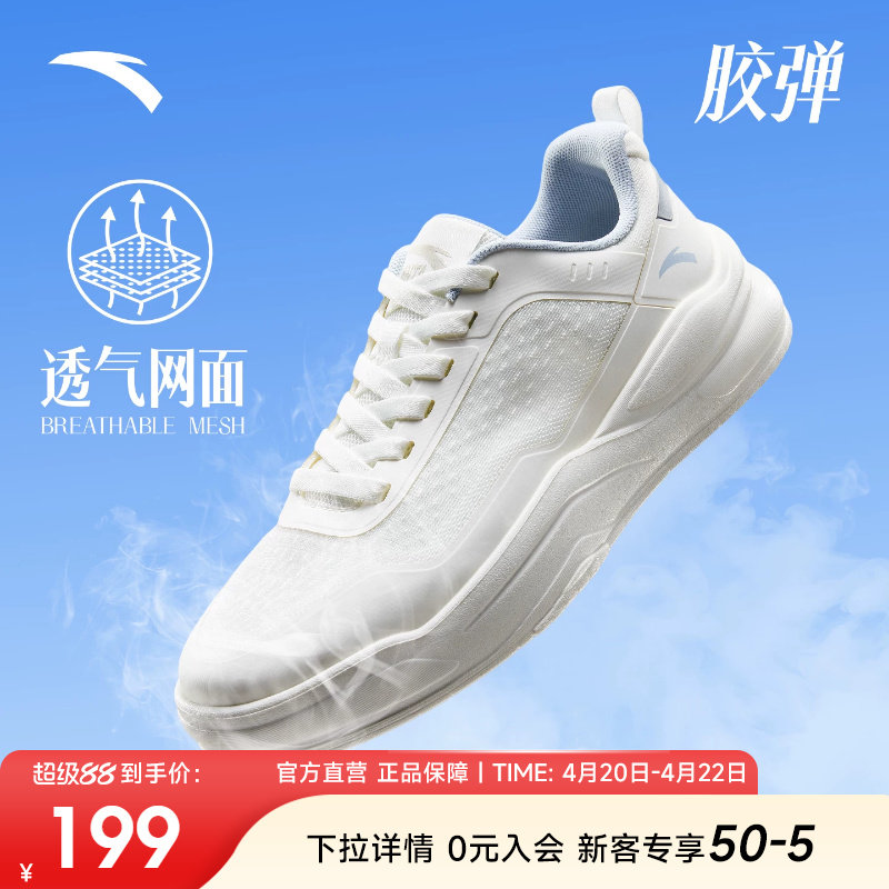 安踏胶弹板鞋网面透气男鞋夏季新款增软底休闲小白鞋轻便运动鞋男