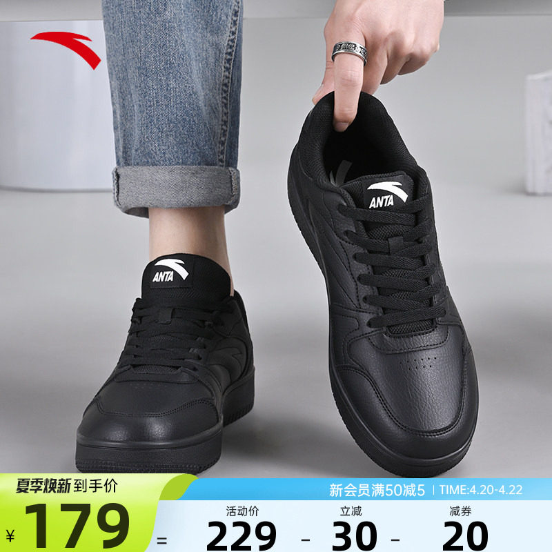 安踏男鞋板鞋黑色2026新款夏季官方旗舰鞋子小黑鞋男款皮面运动鞋