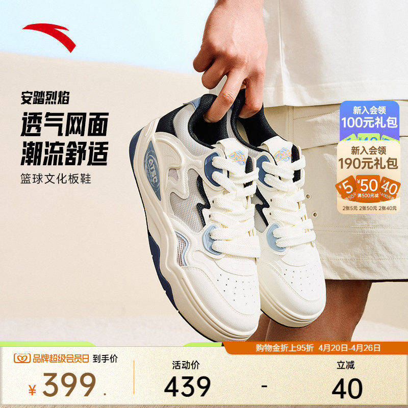 【王一博同款】安踏烈焰丨篮球文化透气板鞋男鞋小白鞋休闲运动鞋