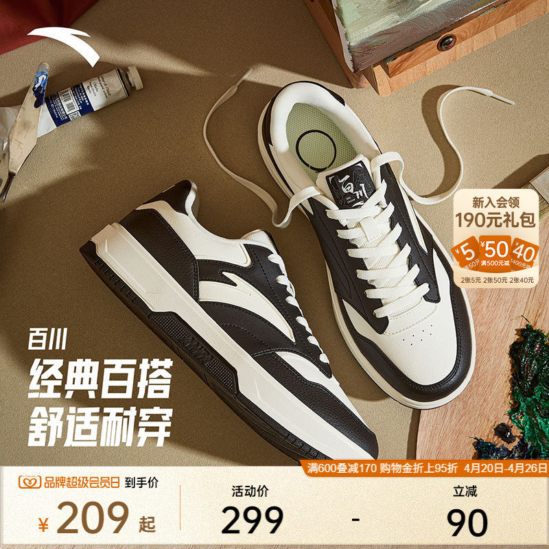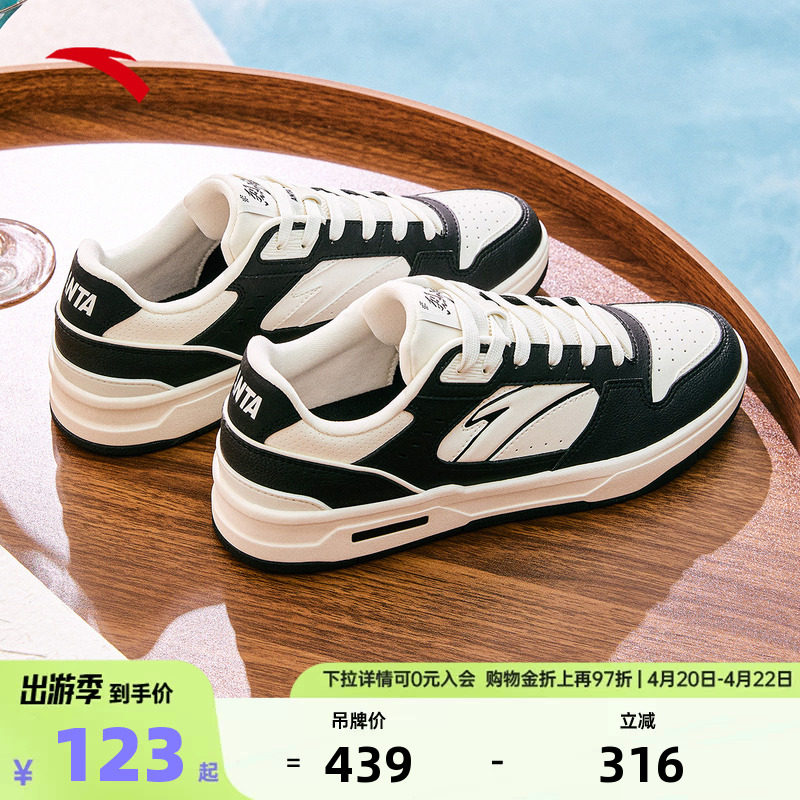安踏百川丨经典黑白低帮板鞋熊猫色男鞋夏季平底运动鞋112618011