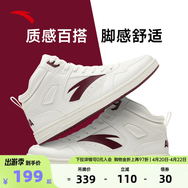 安踏高帮男士板鞋运动鞋2026夏季新款潮流休闲鞋厚底百搭小白鞋子