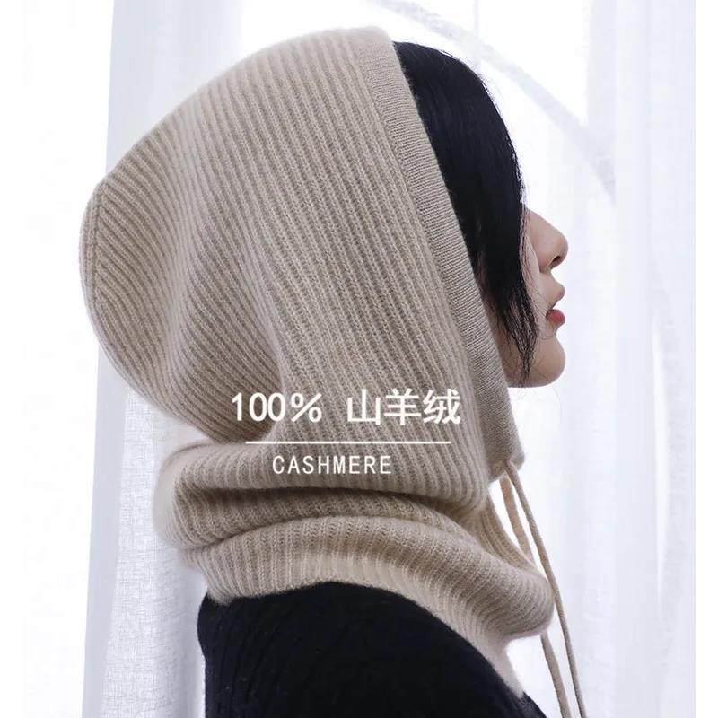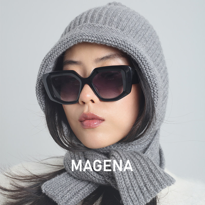 MAGENA重磅纯羊绒 加厚优雅围巾一体帽外搭保暖围脖帽 毛线包脸帽