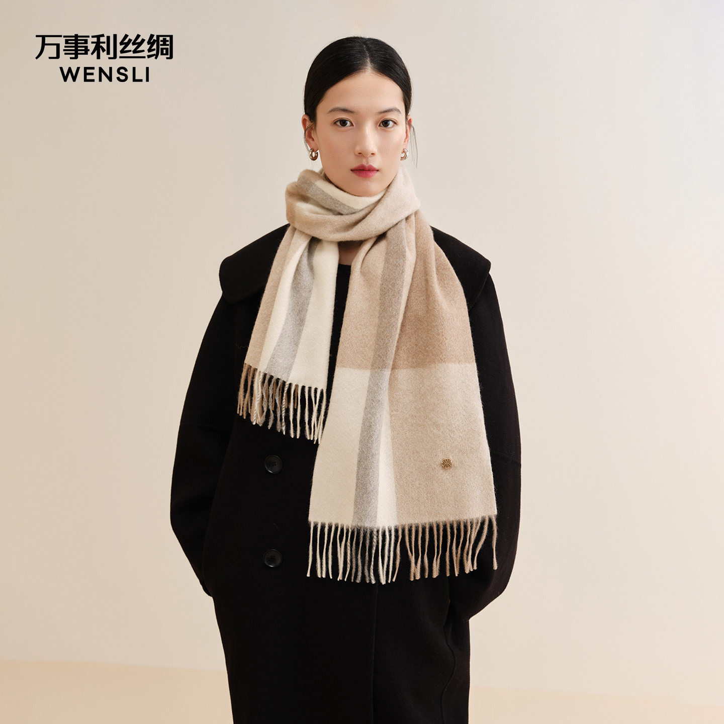 - 黑色羊绒围巾