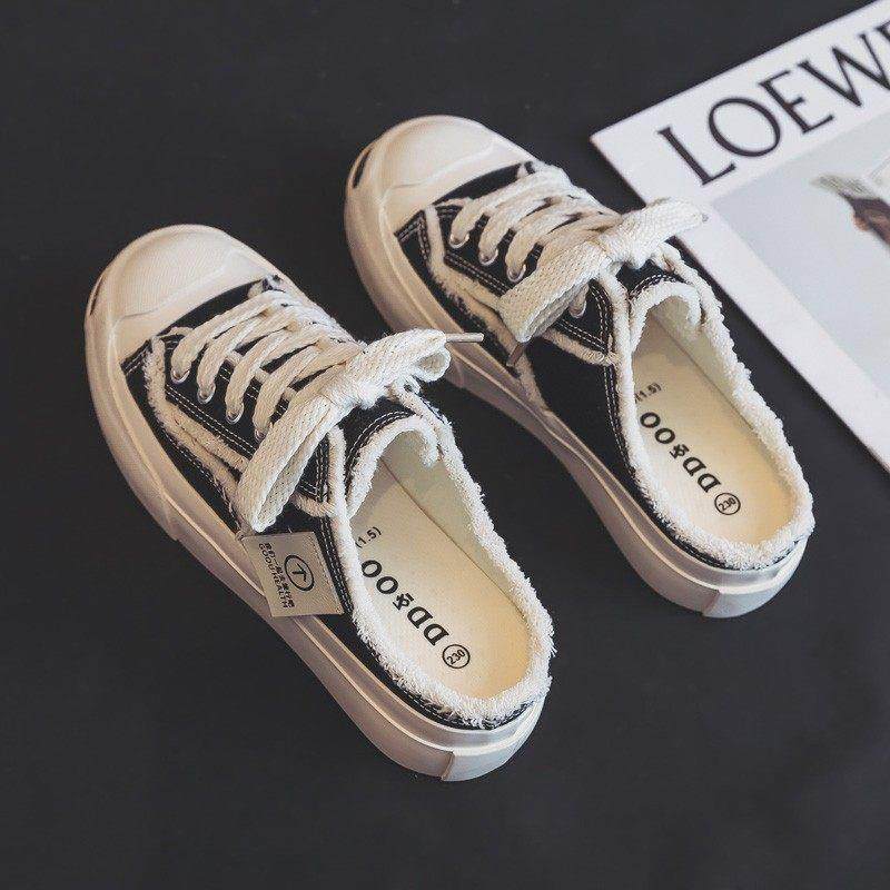 Cioem Kouim~薄款透气半拖帆布鞋女2024新款懒人一脚蹬平底鞋