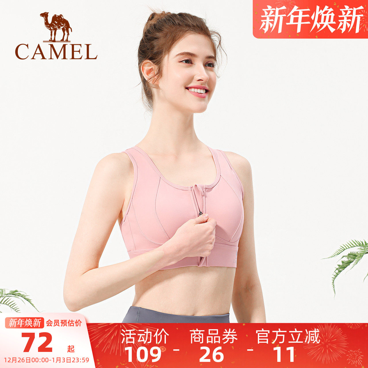 骆驼瑜伽内衣防震拉链外穿健身bra跑步背心聚拢中高强度运动文胸