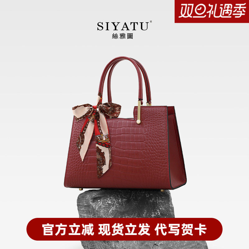 丹希路新款轻奢真皮女包婆婆手提包中年红色结婚婚包送妈妈包大气