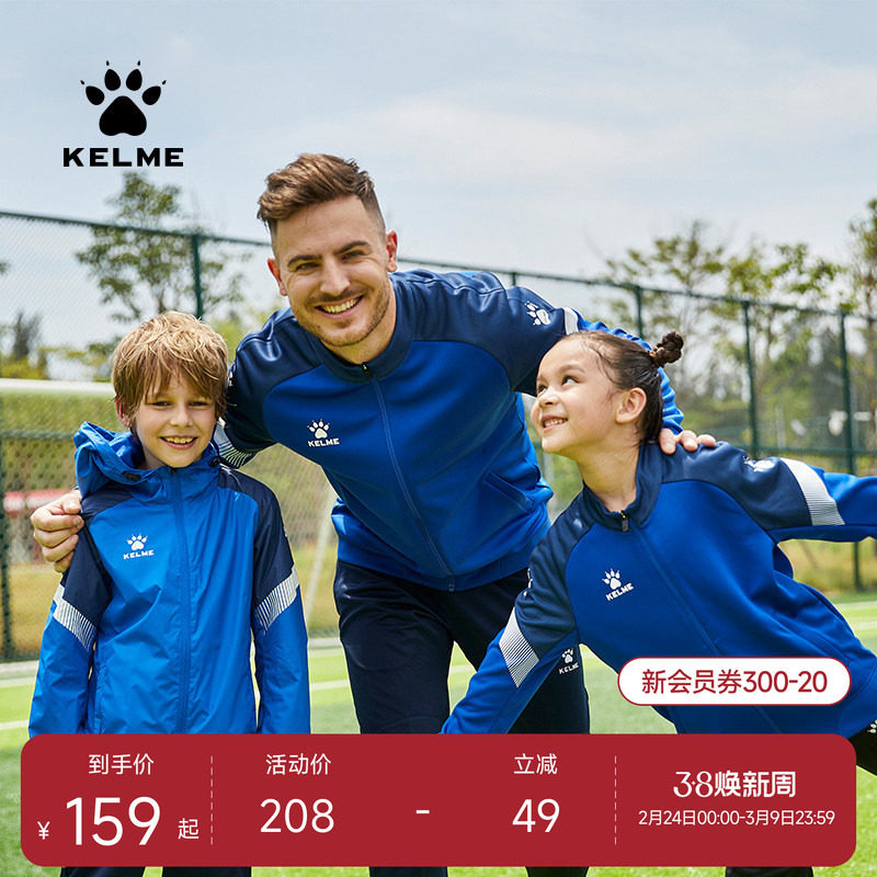 KELME卡尔美运动外套男健身长袖春足球训练出场服童跑步针织夹克