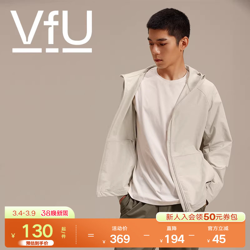 VfU 冲锋衣男健身跑步防水外套户外运动登山旅游徒步通勤修身连帽