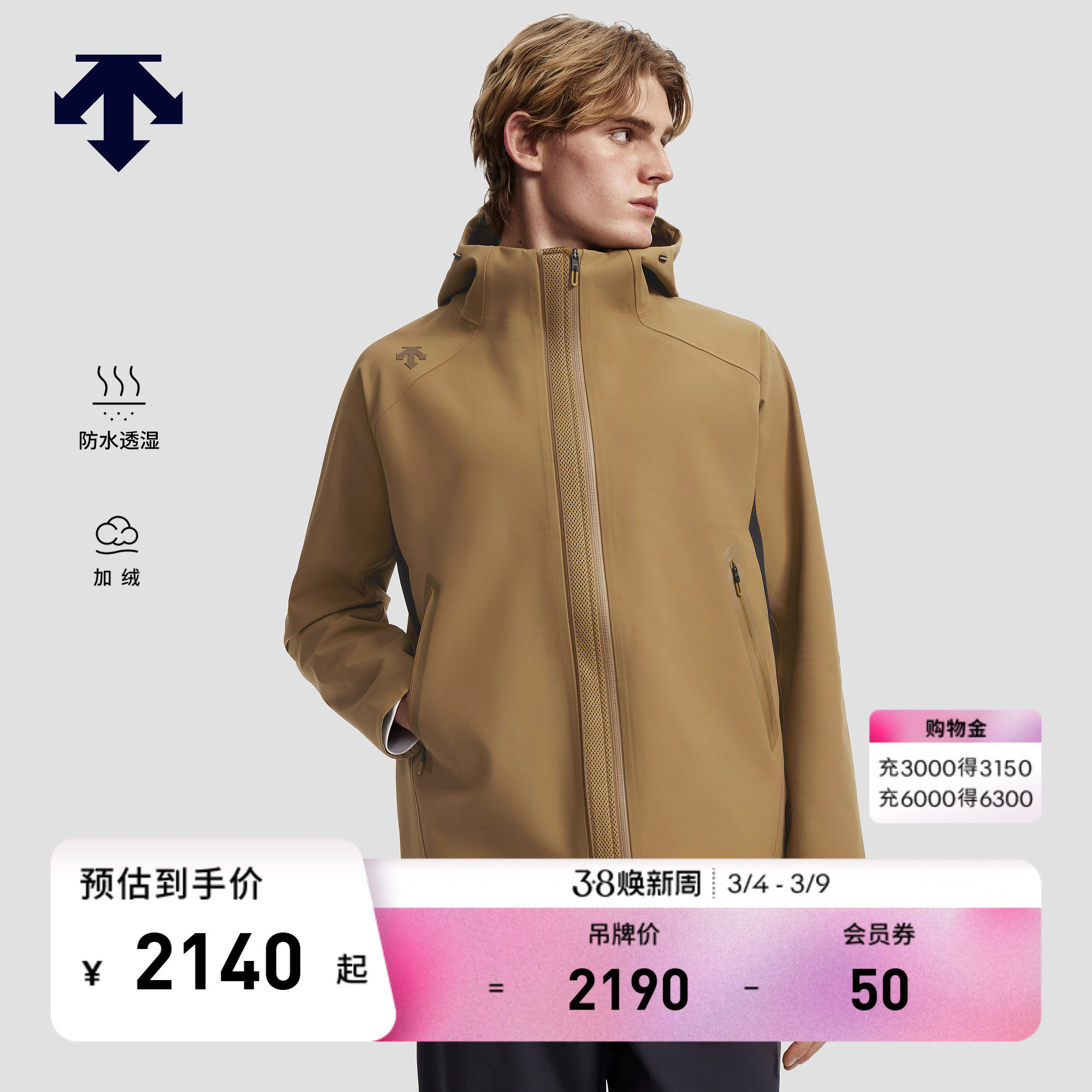 DESCENTE迪桑特TRAINING系列综训健身男士防水透湿加绒外套
