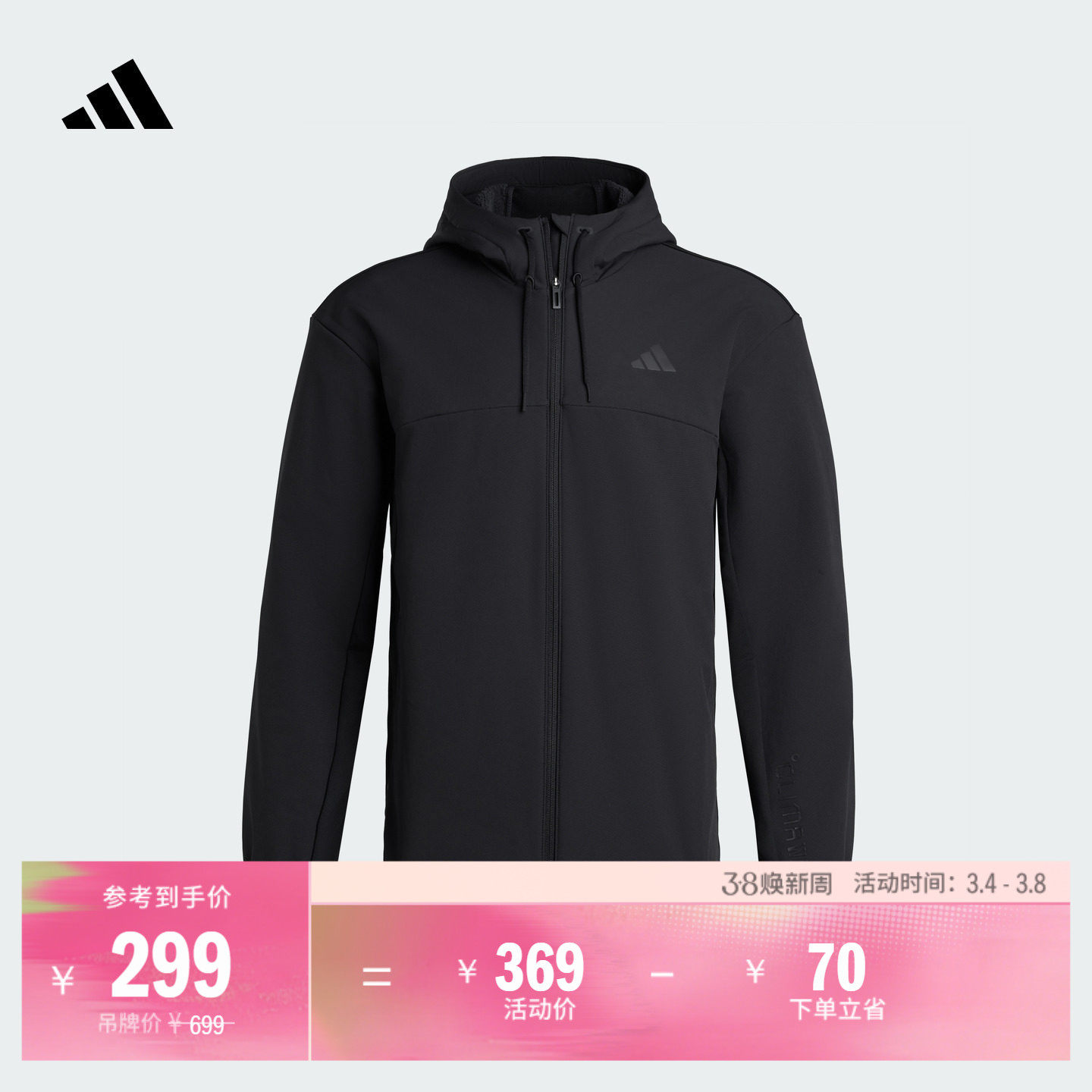 adidas阿迪达斯男子三条纹运动健身连帽时尚夹克外套KA1307