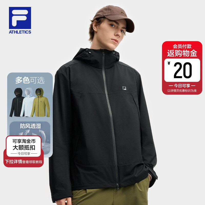 FILA 斐乐官方男女外套健身户外运动防风透湿抗菌自收纳软壳上衣