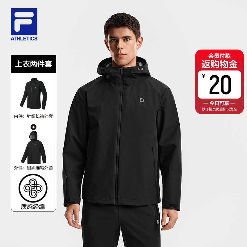 FILA斐乐官方男上衣两件套2026春新款健身运动基础连帽三合一外套