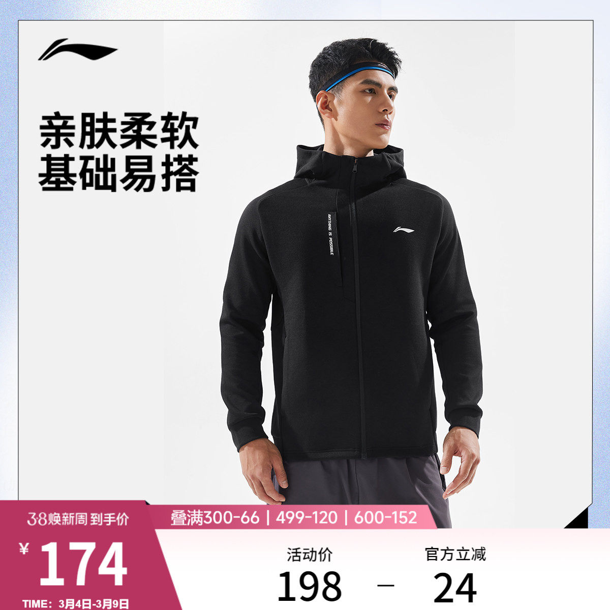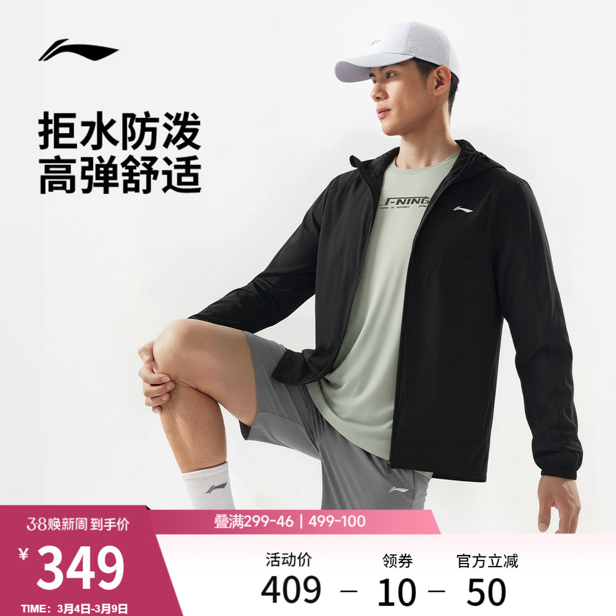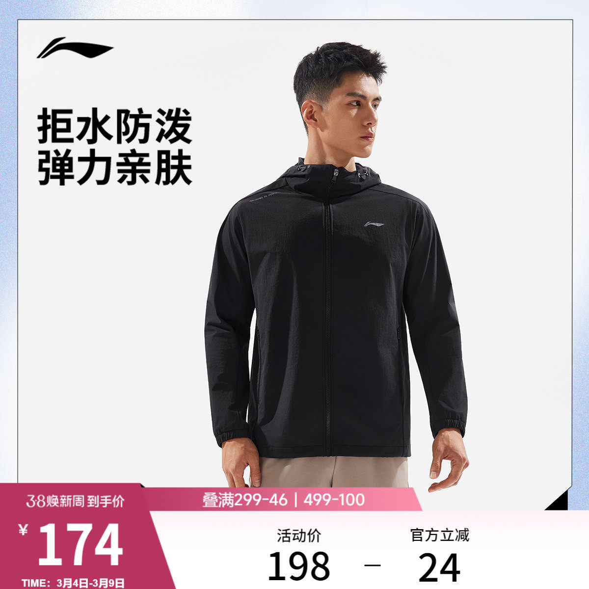 李宁外套男2026新品健身跑步连帽夹克上衣防泼水春季梭织运动风衣