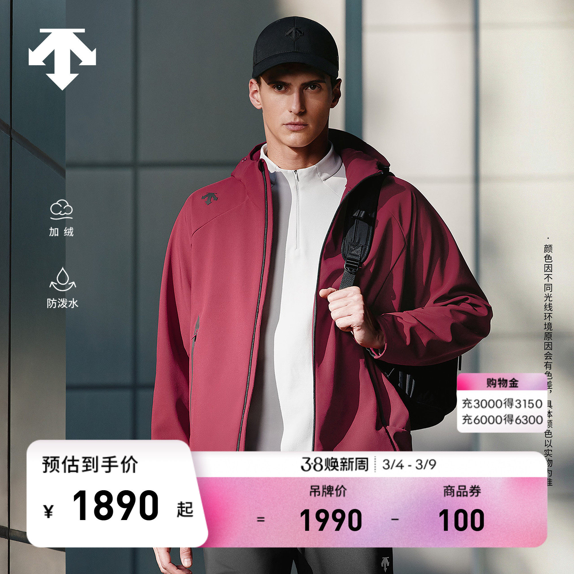 DESCENTE迪桑特TRAINING系列综训运动健身男士防泼水梭织加绒外套