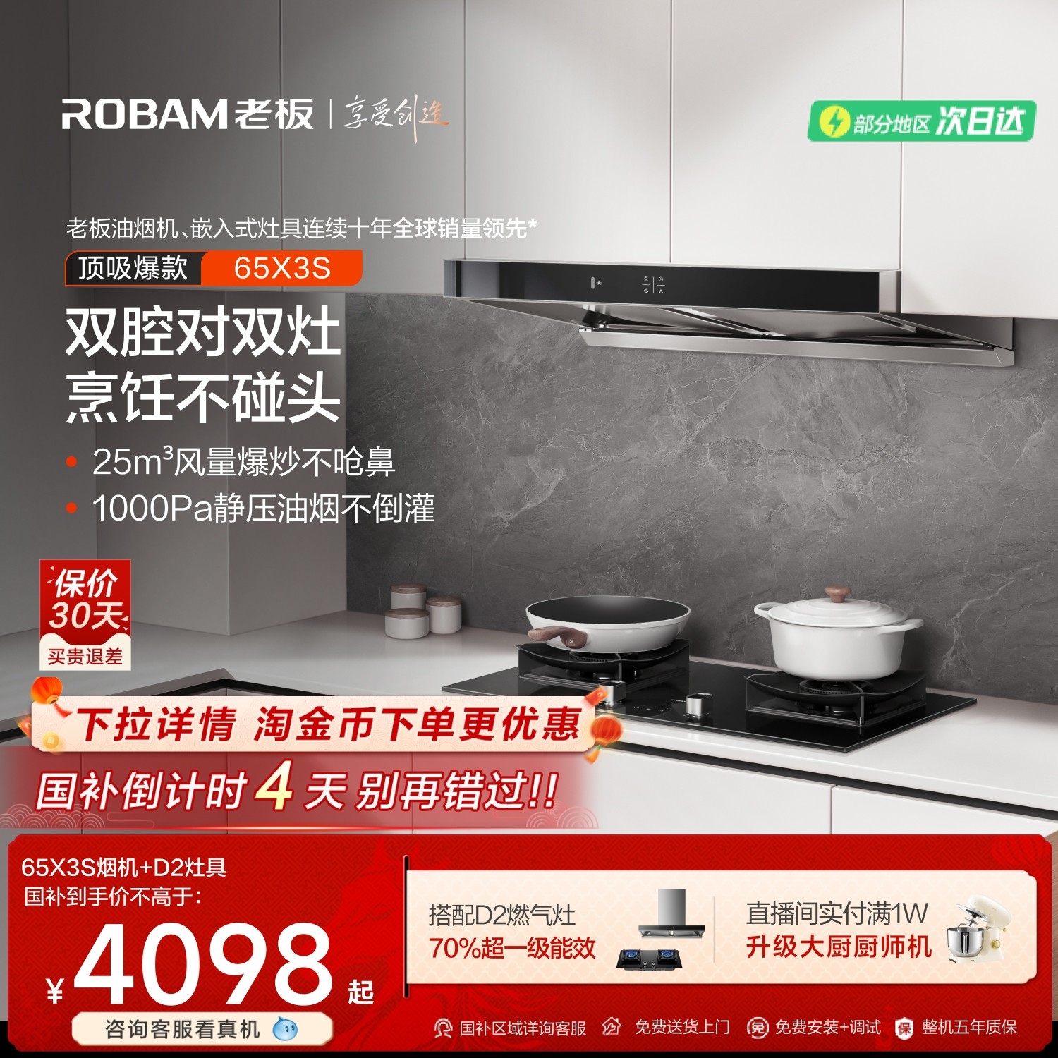 老板官方旗舰欧式顶吸65X3S套系抽油烟机燃气灶具一套烟灶套装