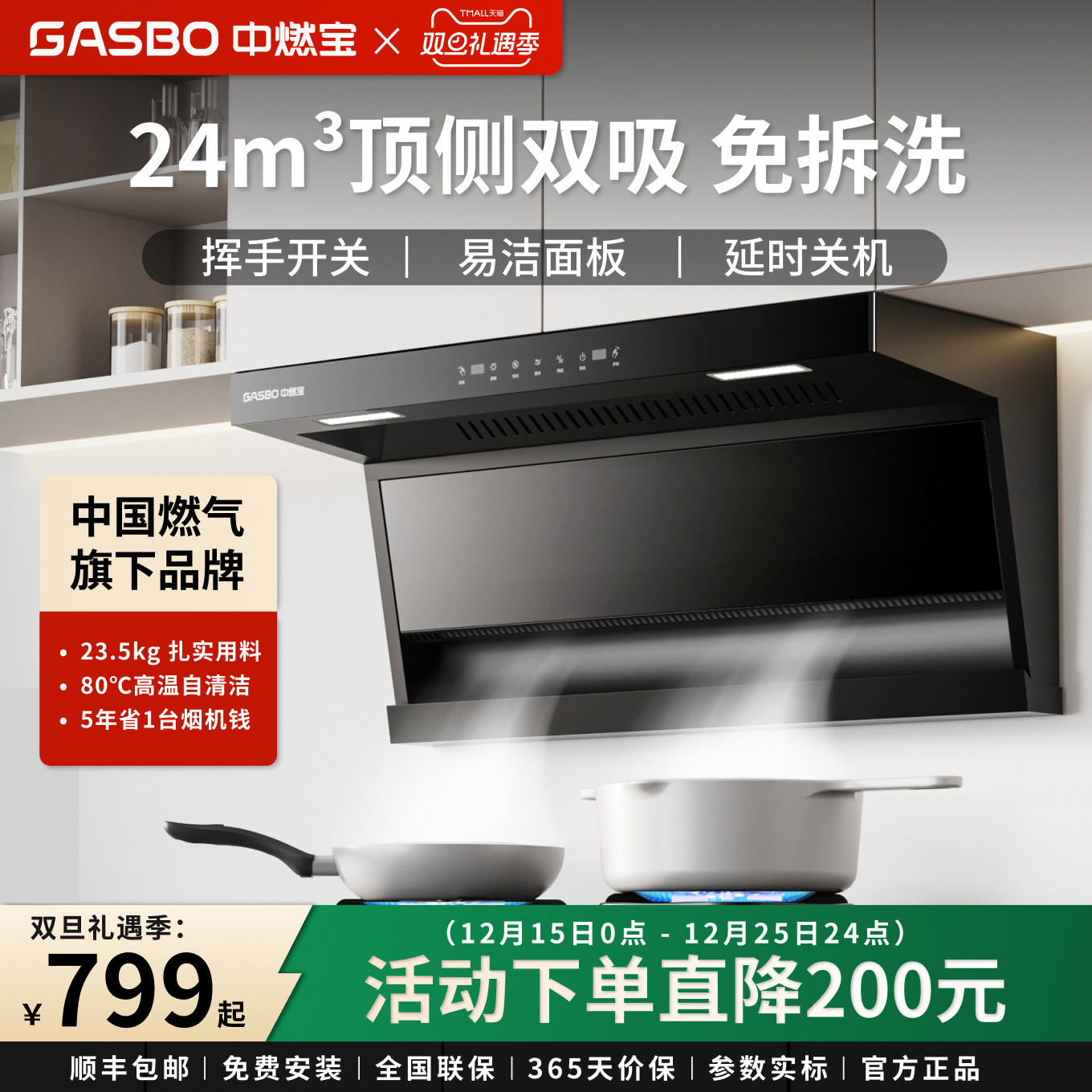 中国燃气中燃宝油烟机Q3顶侧双吸家用静音大吸力超薄烟机烟灶套装