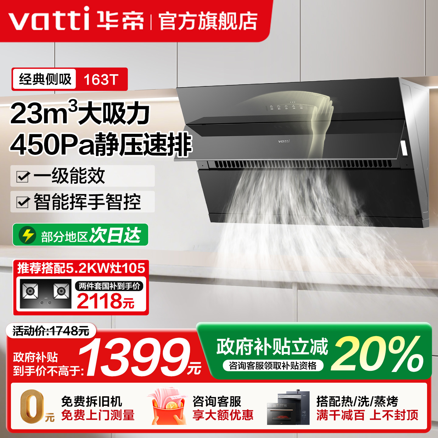华帝油烟机自动洗大吸力小尺寸家用厨房侧吸烟机燃气灶套餐旗舰店