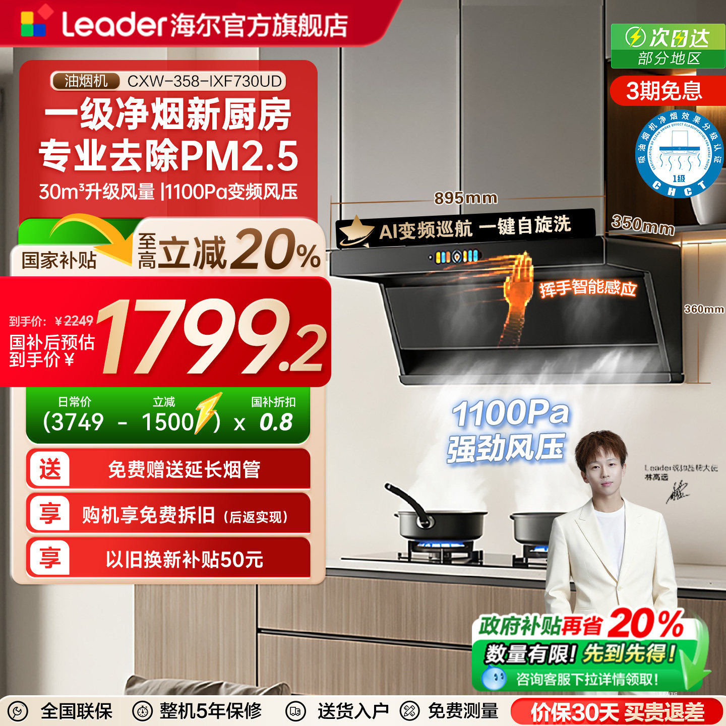 [旗舰顶侧双吸]海尔出品统帅懒人一级净烟机F30吸油烟机烟灶套装