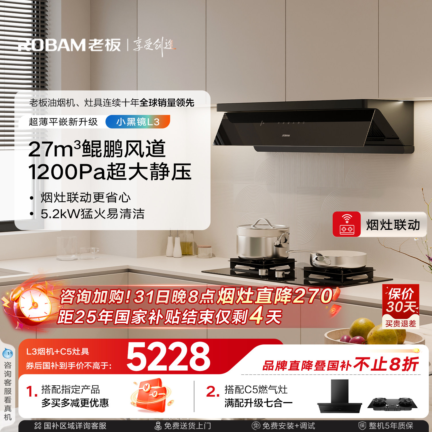 老板小黑镜L3套系大吸力抽油烟机燃气灶一套烟灶套装官方旗舰店