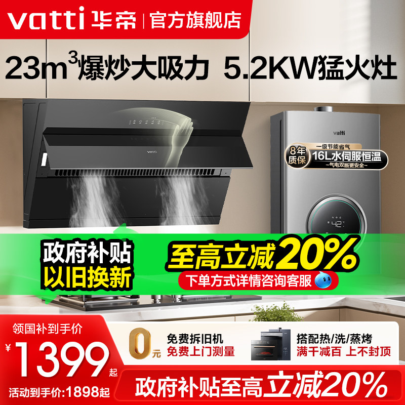 国补华帝抽油烟机燃气灶套餐小飞翼K7顶侧双吸7字型厨房烟灶套装