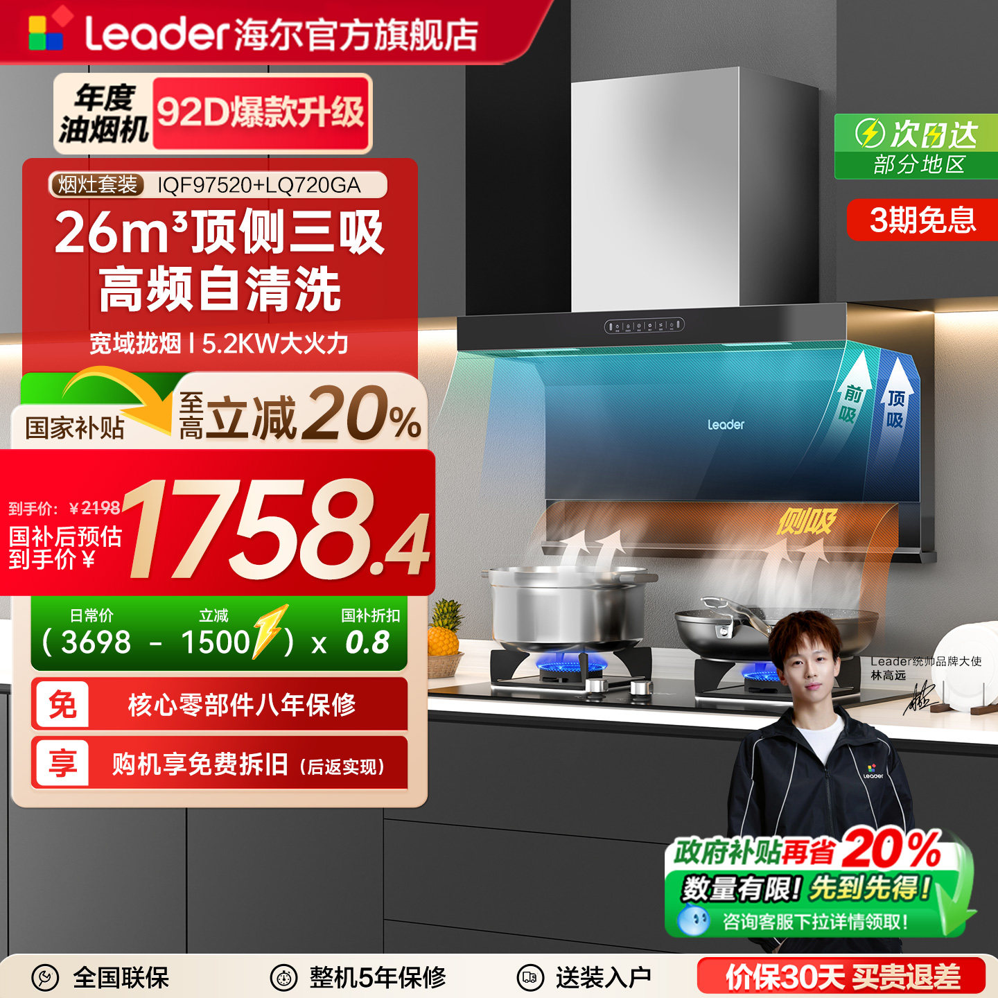海尔出品统帅懒人顶侧双吸油烟机燃气灶一套家用厨房92D烟灶套装