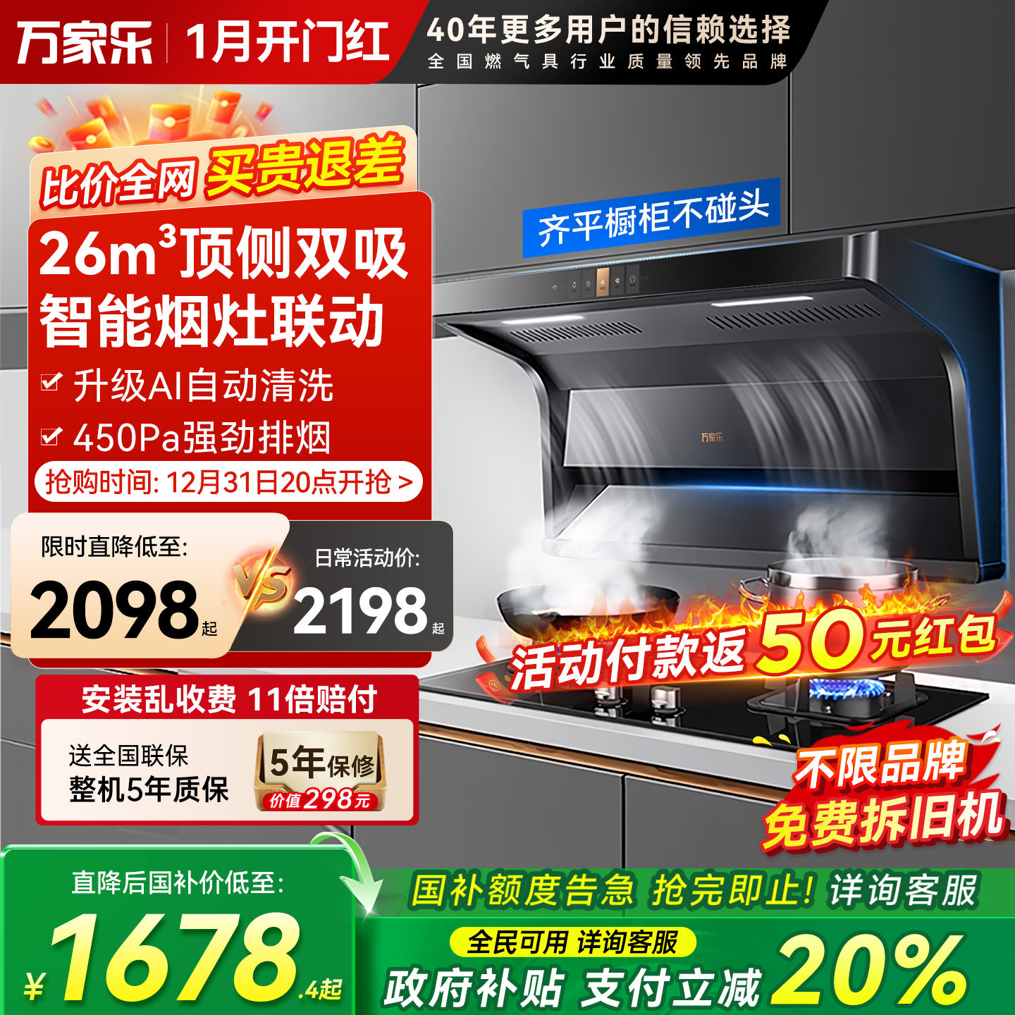 [政府补贴]万和无痕顶侧三吸抽油烟机变频油烟机烟灶套装V9LPLUS