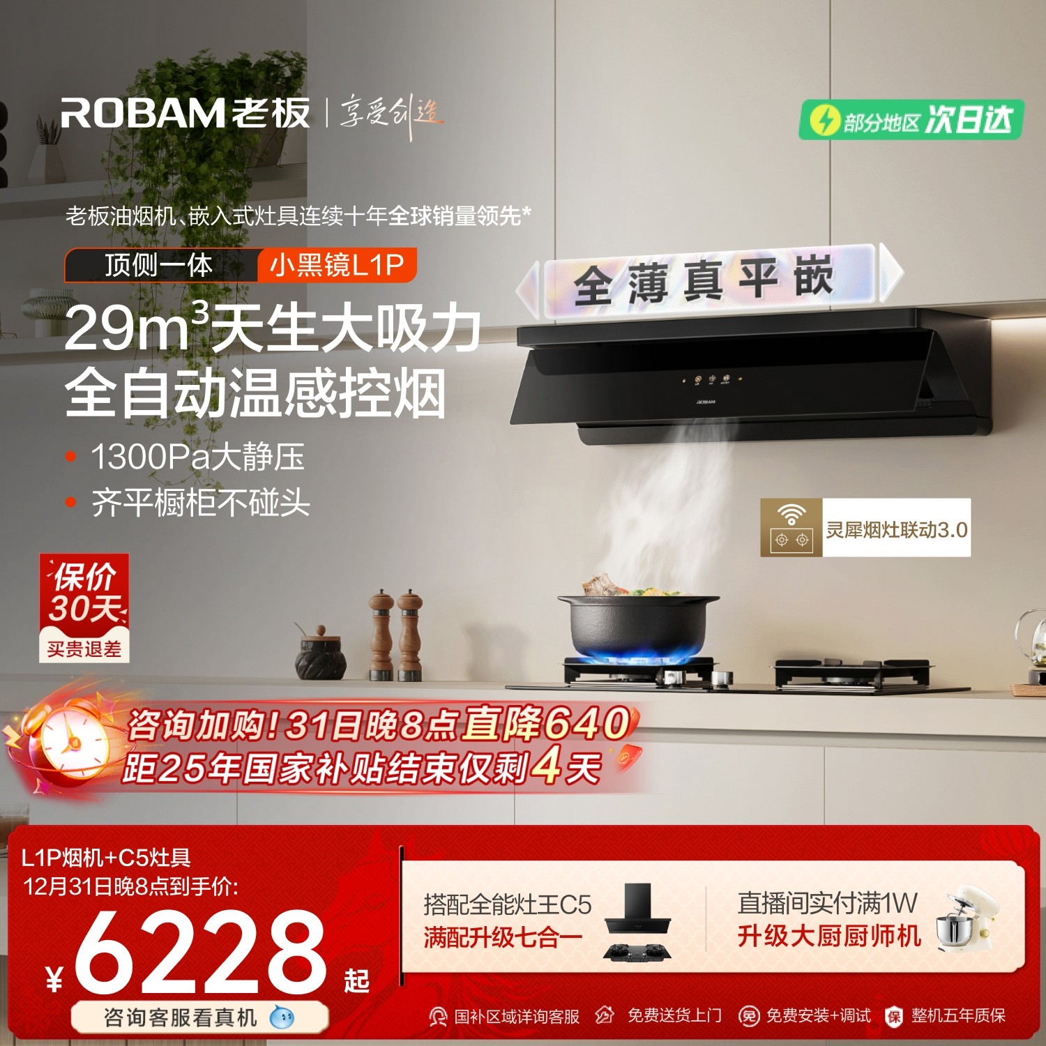 老板小黑镜L1P套系大吸力抽油烟机燃气灶一套烟灶套装官方旗舰店