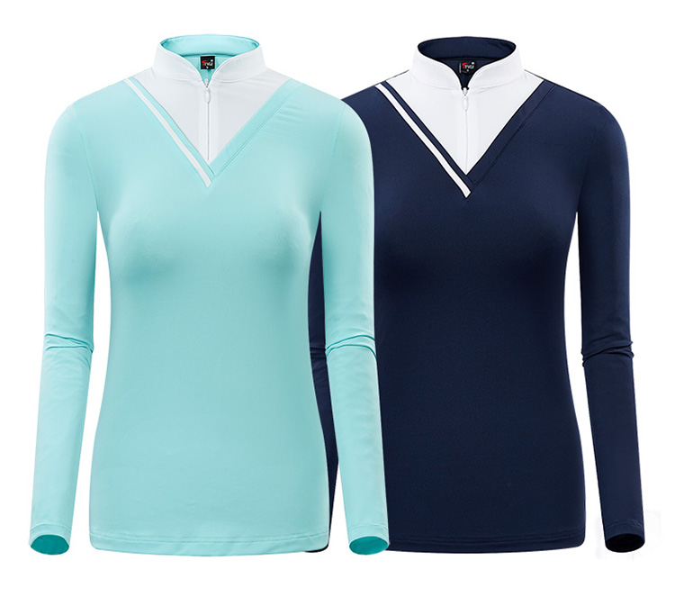 T152高尔夫女装高尔夫球服装女士长袖立领撞色韩版修身golf上衣薄
