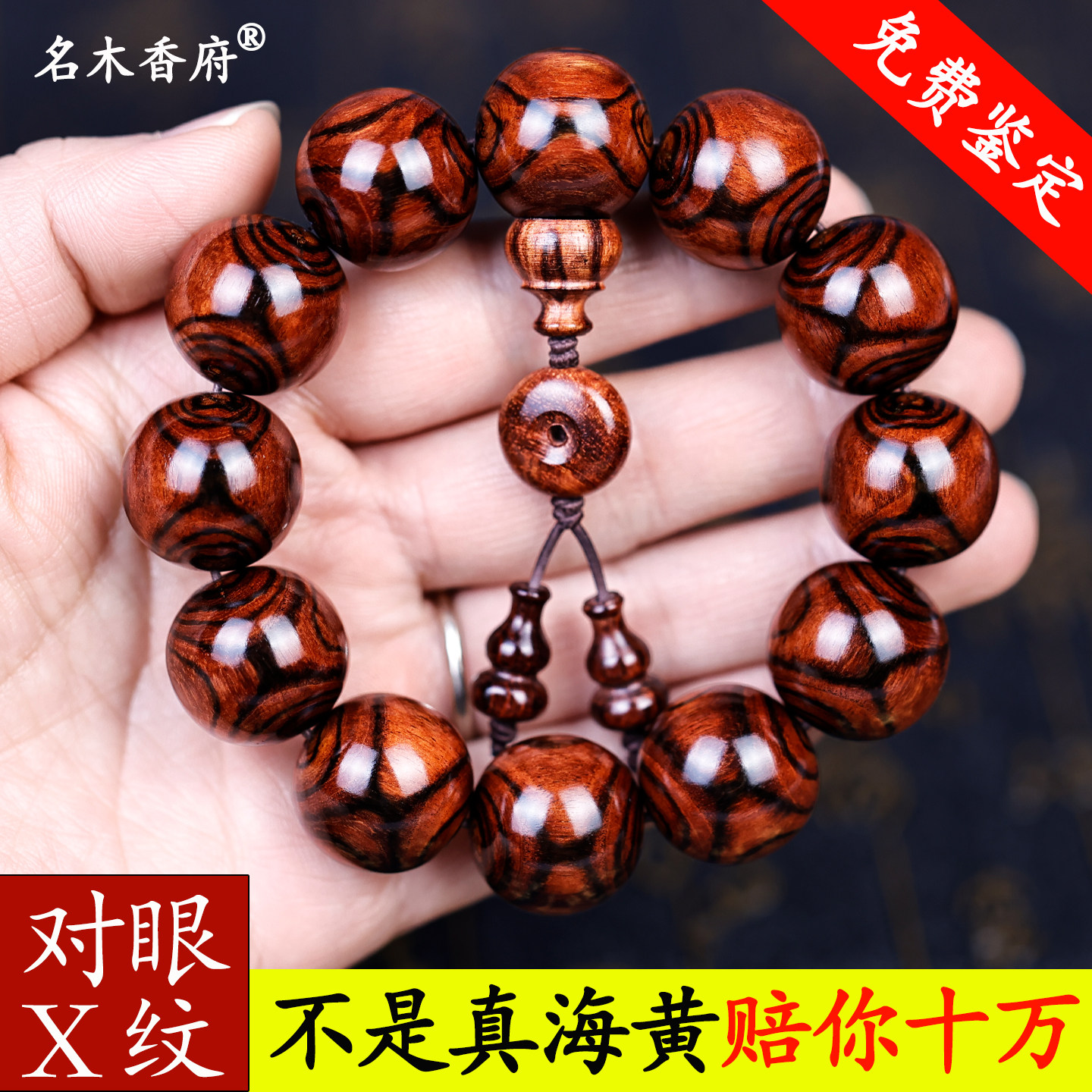 名木香府正宗海南黄花梨对眼X纹鬼脸纹2.0手串老料海黄手链佛珠
