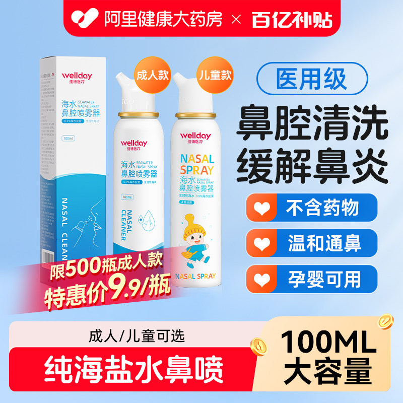 维德医疗生理性海盐水鼻腔喷雾医用儿童鼻炎洗鼻器婴儿鼻子鼻喷剂