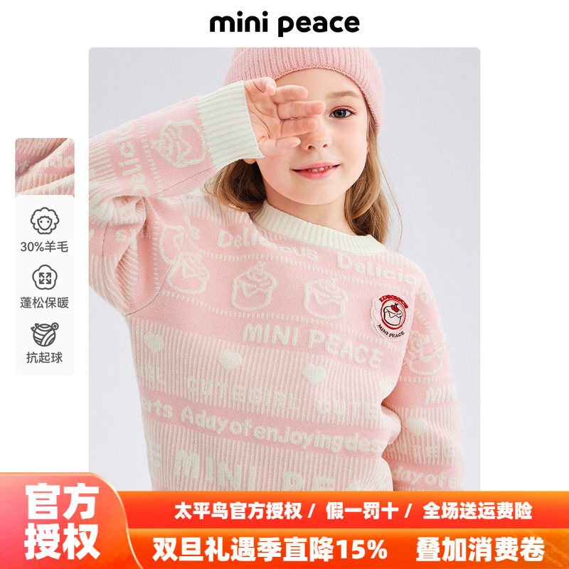MINIPEACE太平鸟童装女童花纱毛衣针织衫儿童内搭提花打底衫秋冬