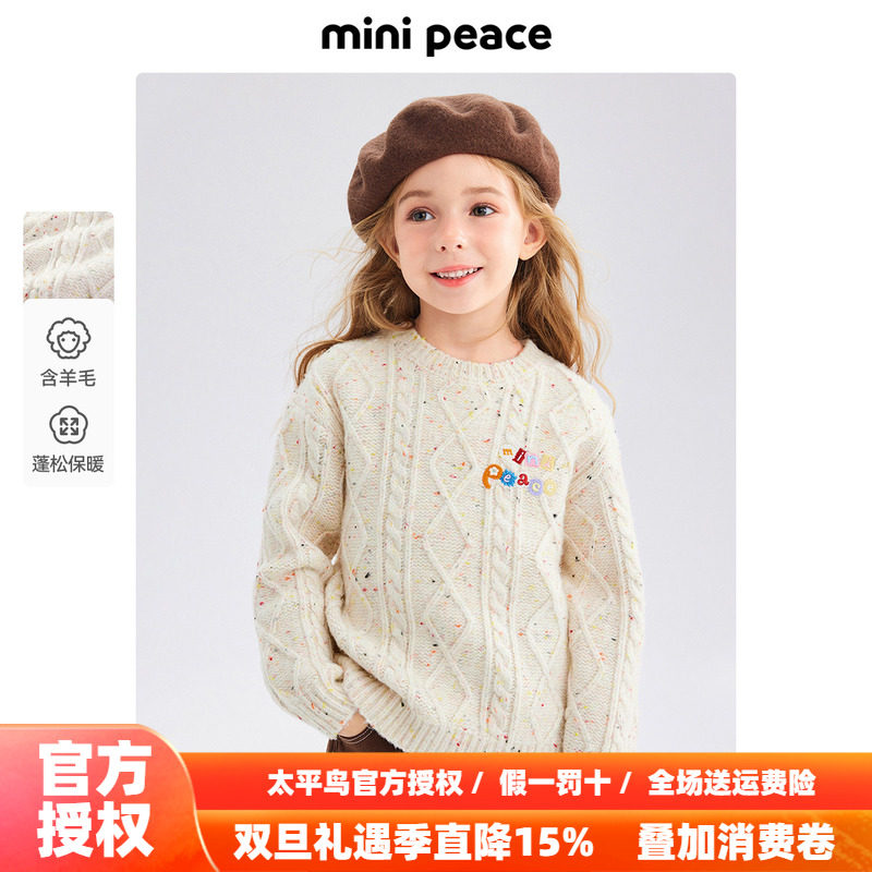 MINIPEACE太平鸟童装女童暗纹毛衣针织衫儿童打底衫秋冬新款洋气