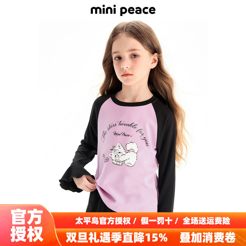MINIPEACE太平鸟童装女童长袖T恤甜酷少女秋装上衣儿童新款打底衫