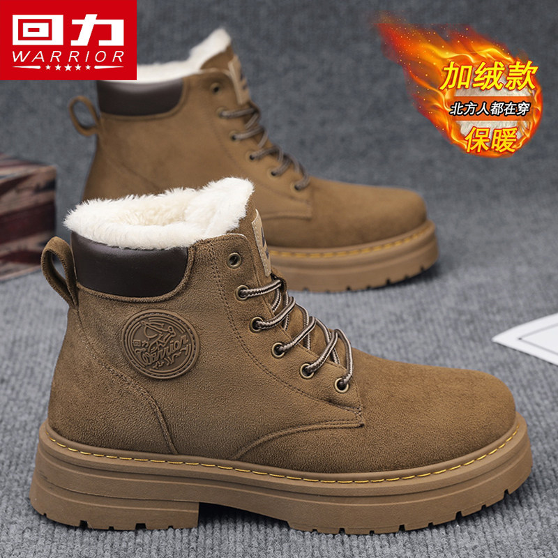 回力马丁靴高帮冬季男鞋英伦风加绒保暖棉鞋雪地工装靴沙漠作战靴