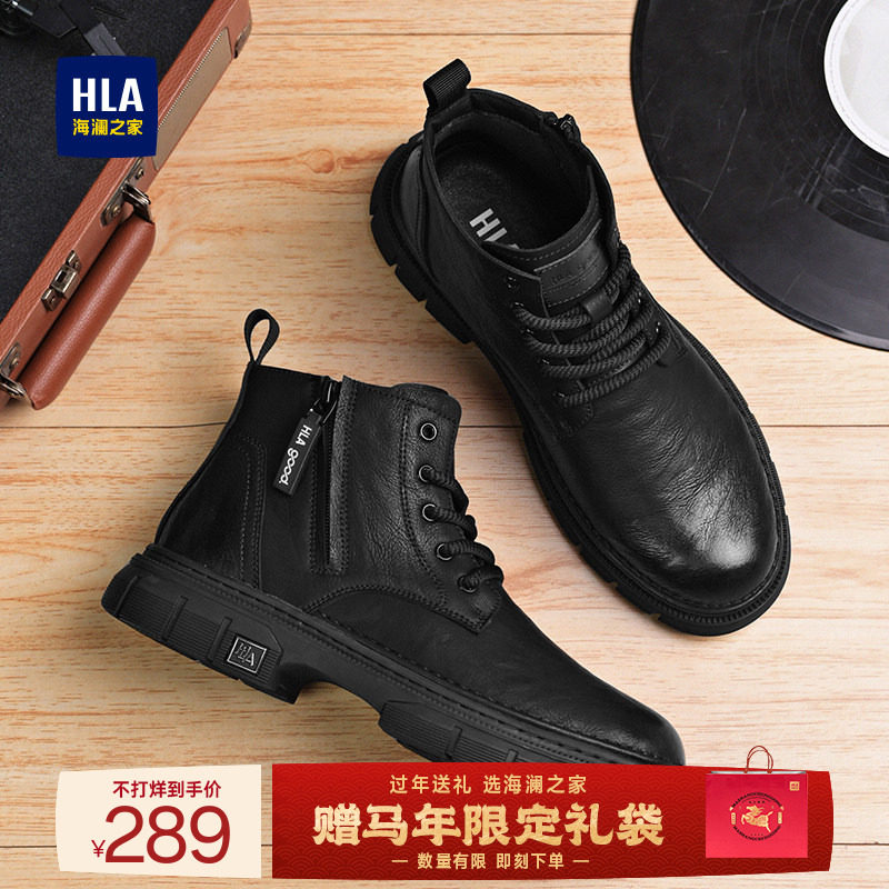 HLA/海澜之家男鞋高帮冬季潮流皮靴户外马丁靴英伦风加绒工装男靴