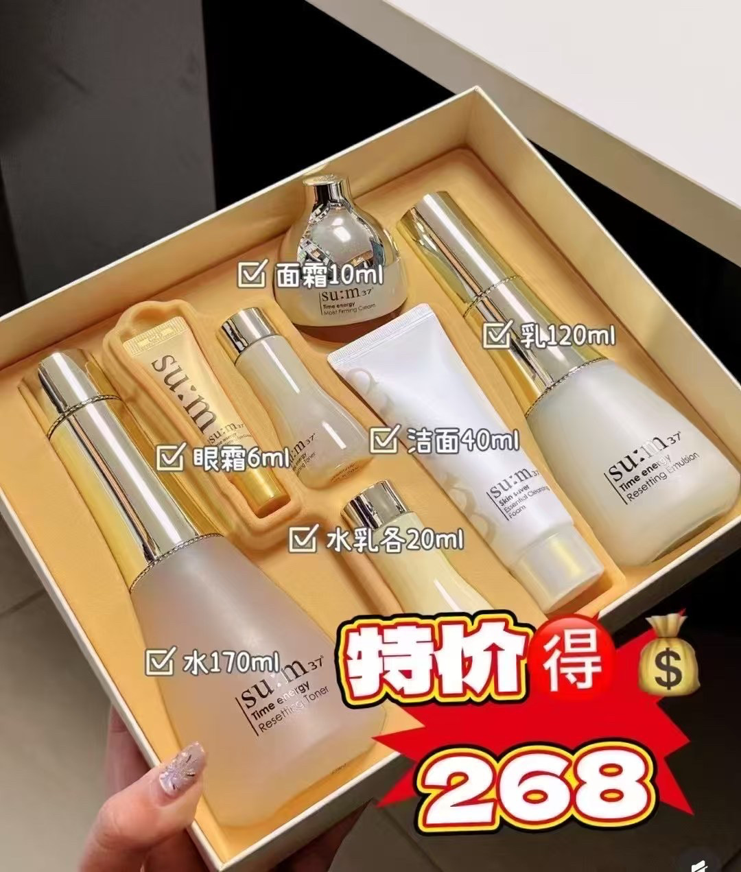 韩国专柜sum37呼吸苏秘时光能量套盒水乳霜气垫四件套企划现货