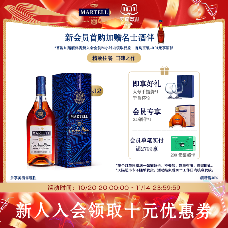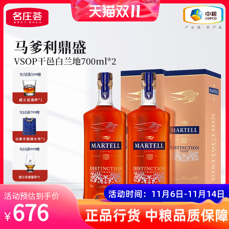 马爹利martell鼎盛VSOP干邑白兰地700ml*2 法国洋酒