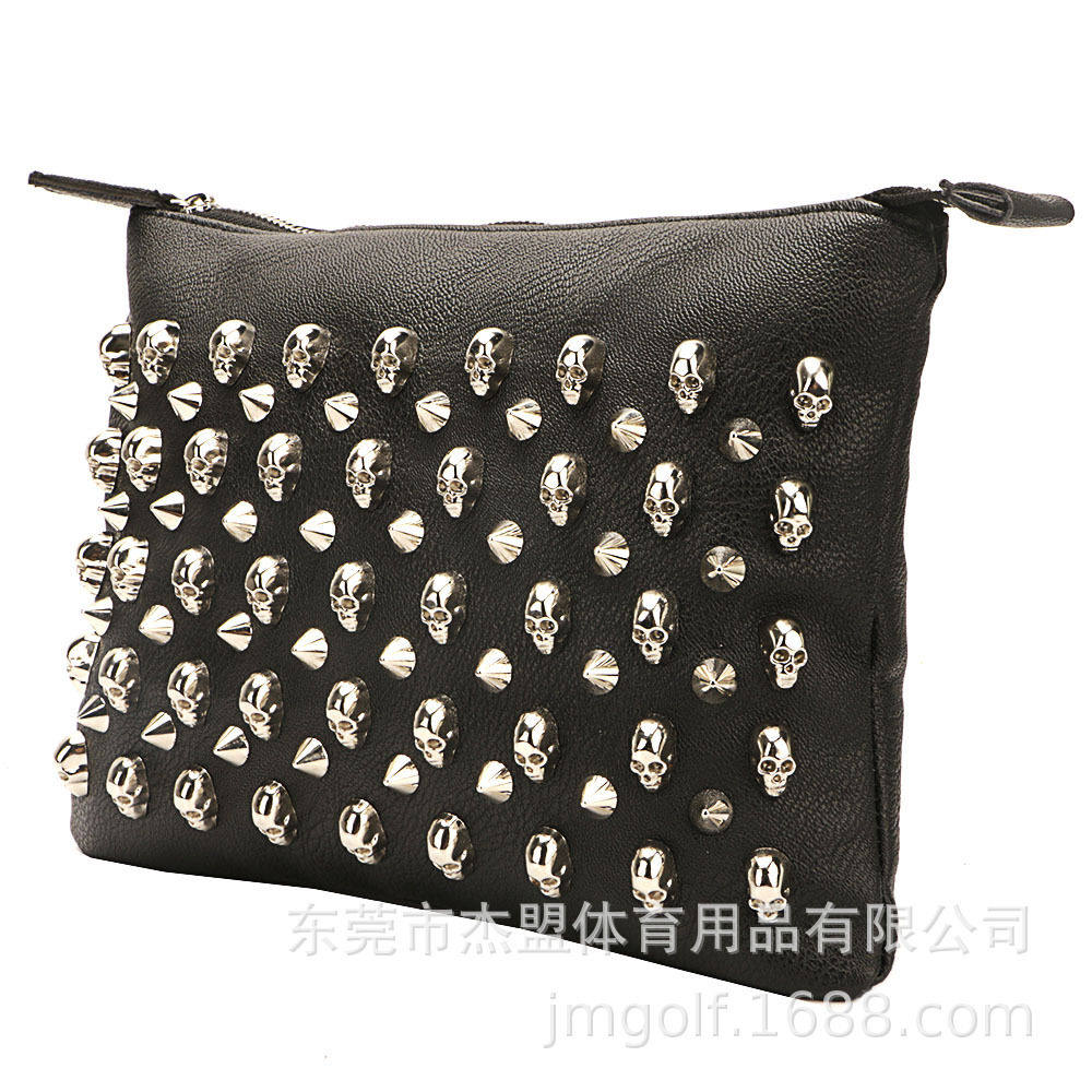 尔夫手包骷髅头金属铆钉多功能工具包28*20.5CM跨境爆款