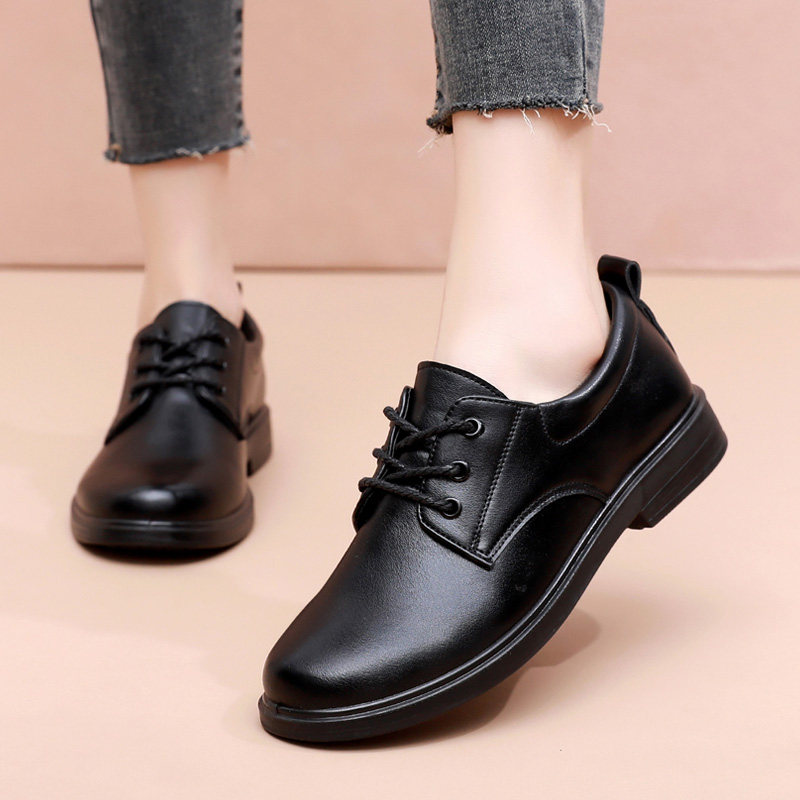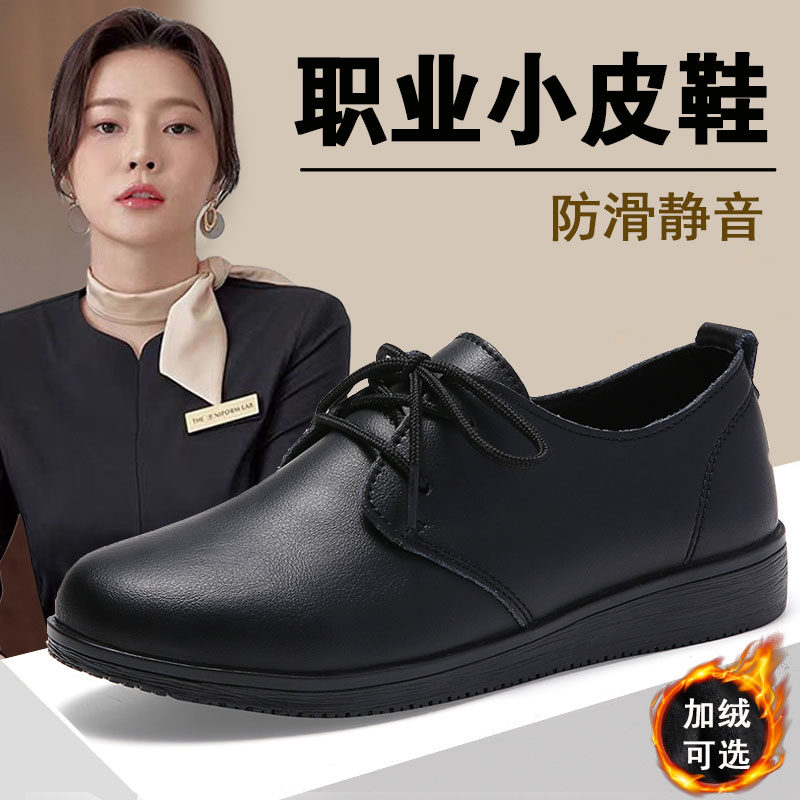 服务员工作鞋黑色工装皮女士上班防滑女软底舒适软底平底职业女鞋